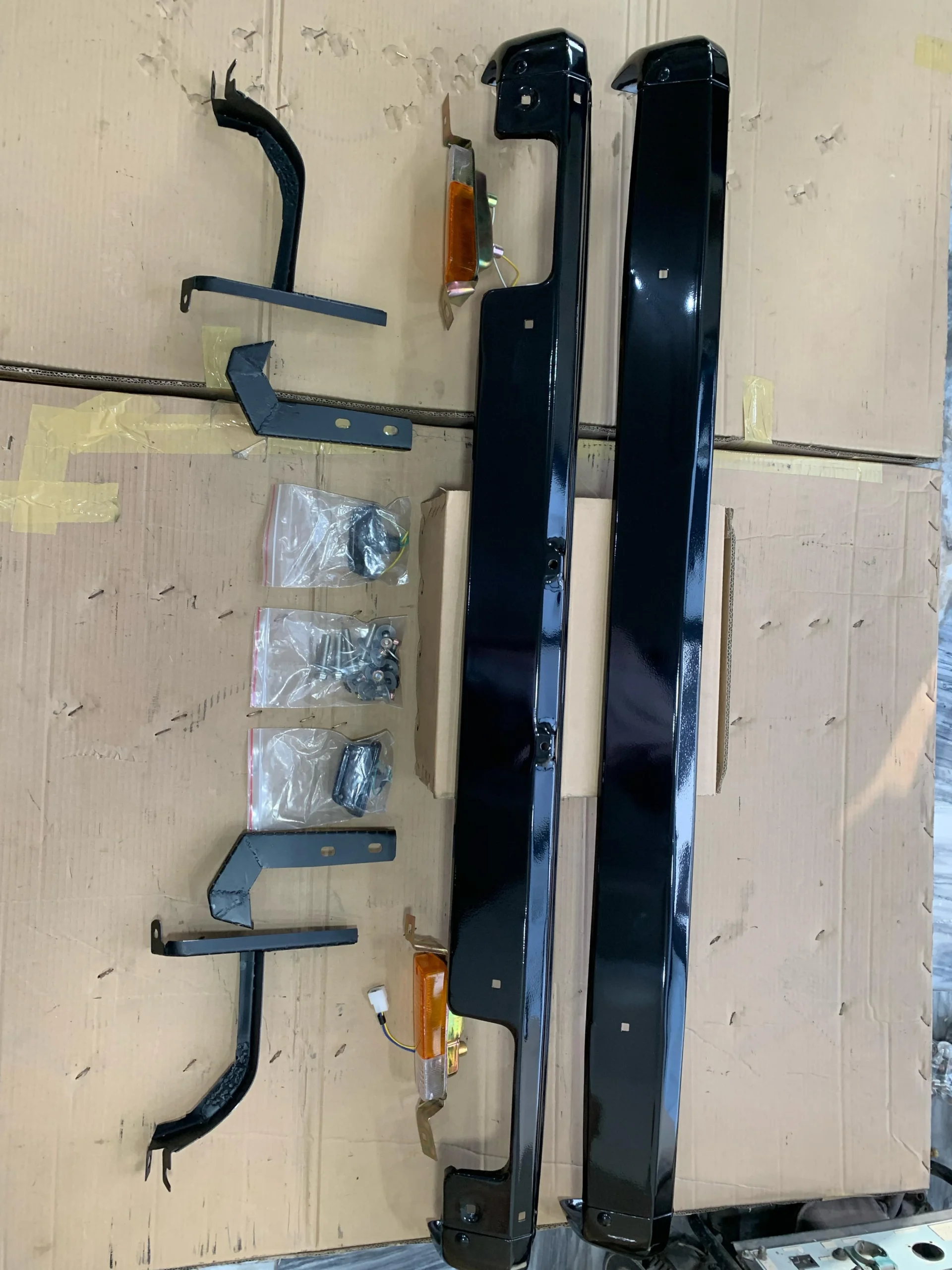 Setup Contains : Front Bumper – Back Bumper – 4 Brackets – 4 Corner Caps – 2 Indicator – 2 Licence Plate lights – all fitting bolts.