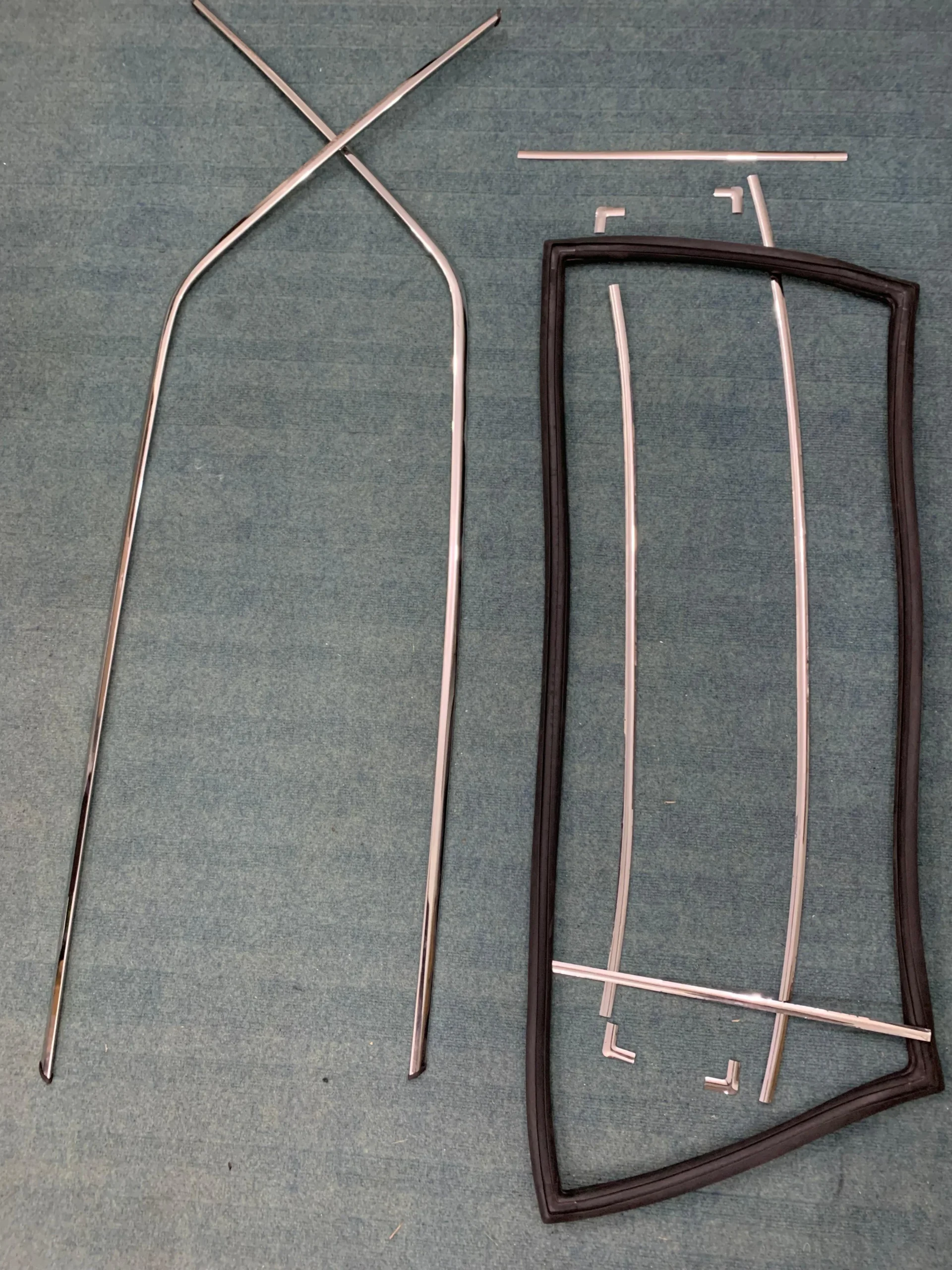 This Set Contains : Pair of Roof moldings made in stainless Steel + Back wind Sheild Rubber seal + trims for that seal