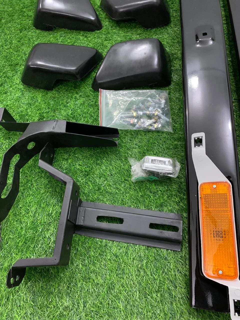 Setup Contains : Front Bumper – Back Bumper – 4 Brackets – 4 Corner Caps – 2 Indicator – 2 Licence Plate lights – all fitting bolts.